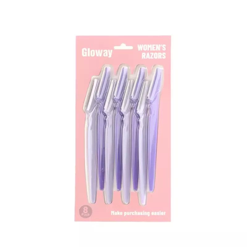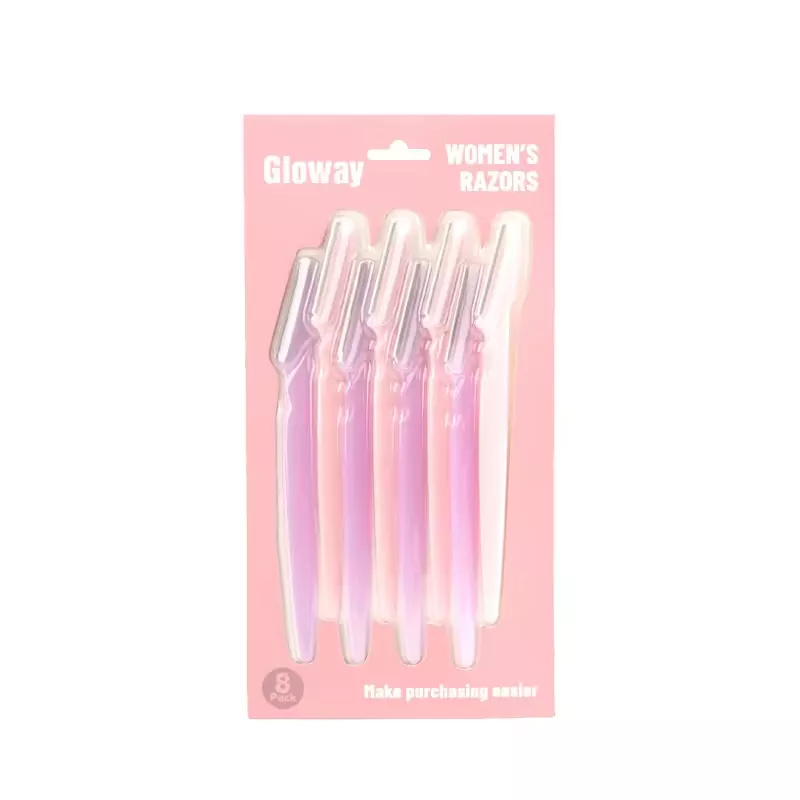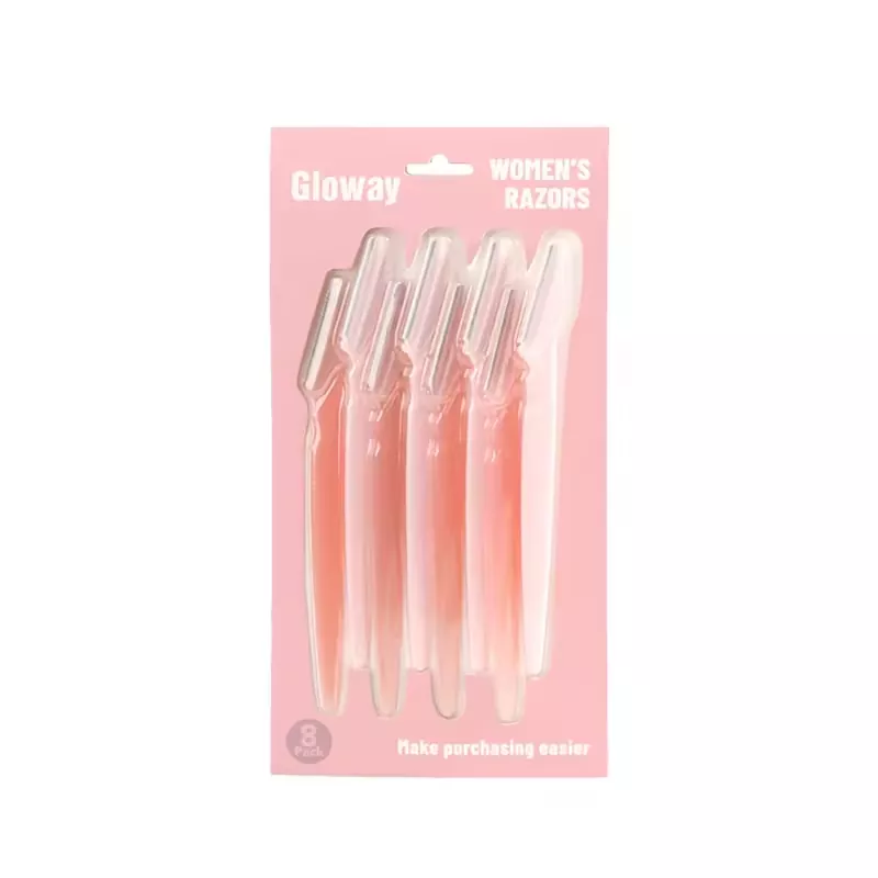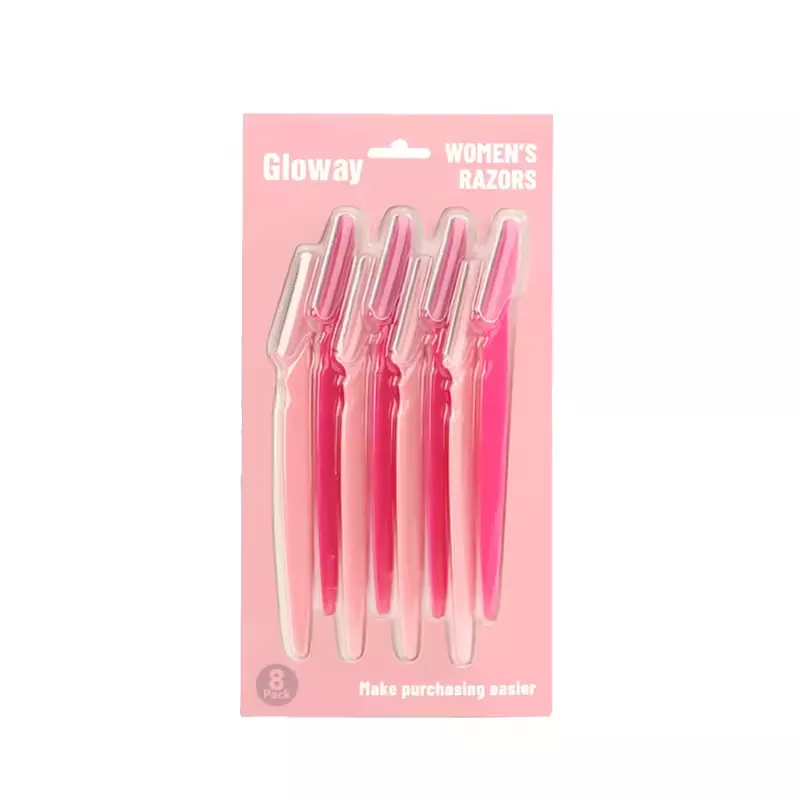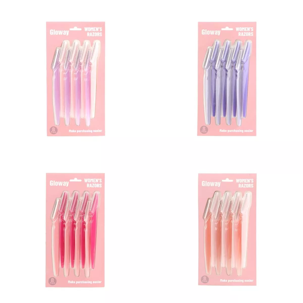 Постигнете прецизно, безболезнено оформяне на веждите у дома с дамските бръсначи за вежди GLOWAY. Проектиран с фини, щадящи кожата остриета от неръждаема стомана, той нежно оформя веждите и премахва фините косми по лицето без дразнене, идеален за чувствителна кожа. Тънката, ергономична пластмасова дръжка предлага удобна, неплъзгаща се дръжка за лесен контрол. Предлага се в комплекти с меки пастелни цветове (опаковки от 8 броя), предлага се в преносима опаковка, идеална за пътуване и ежедневни корекции. Красота, която трябва да имате, от съществено значение за безпроблемни резултати с качество на салона по всяко време и навсякъде.