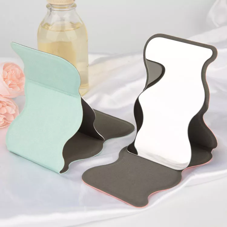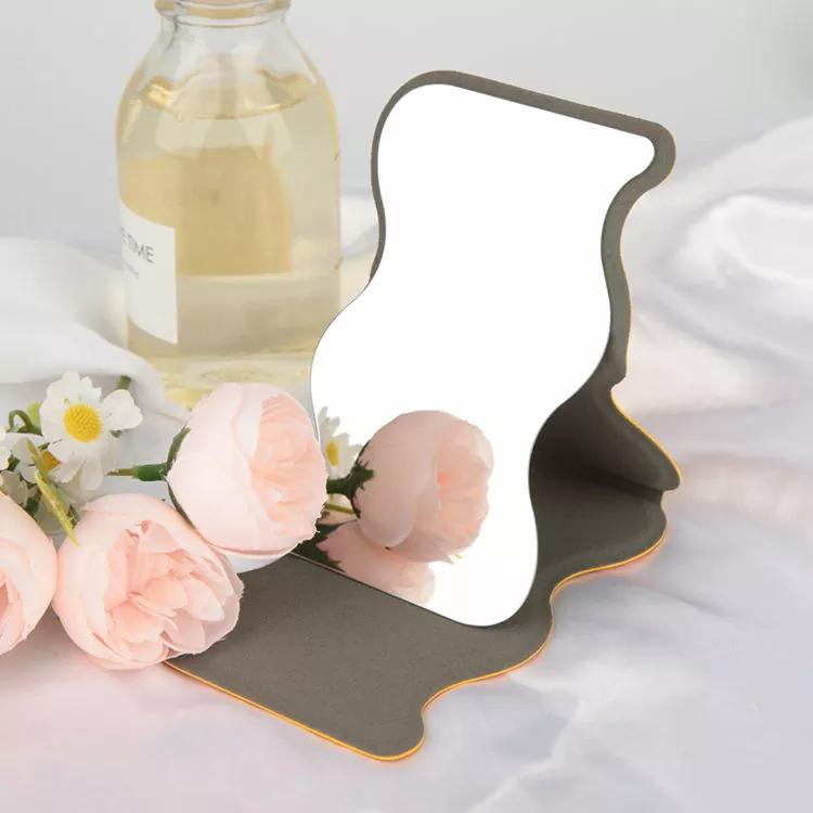 Уникалното вълнообразно сгъваемо джобно огледало съчетава стилен извит силует с практична функционалност. Капак от мека PU кожа предпазва стъклената повърхност с висока разделителна способност, осигурявайки ясно отражение без изкривяване за прецизен грим и грижа за кожата. Неговата сгъваема стойка позволява използване със свободни ръце, което го прави идеален за пътуване, пътуване до работното място и бързи корекции в движение.