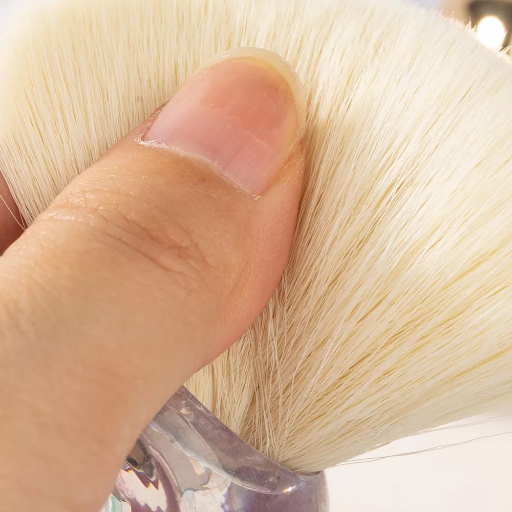 Единичната четка за грим Blush разполага с изключително меки, пухкави синтетични косми. Завъртете го в прахообразен или кремообразен руж, изтупайте излишното, след това прокарайте ябълките на бузите за естествен, здрав руменина и безпроблемно смесване.