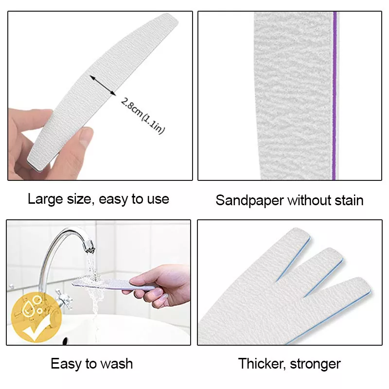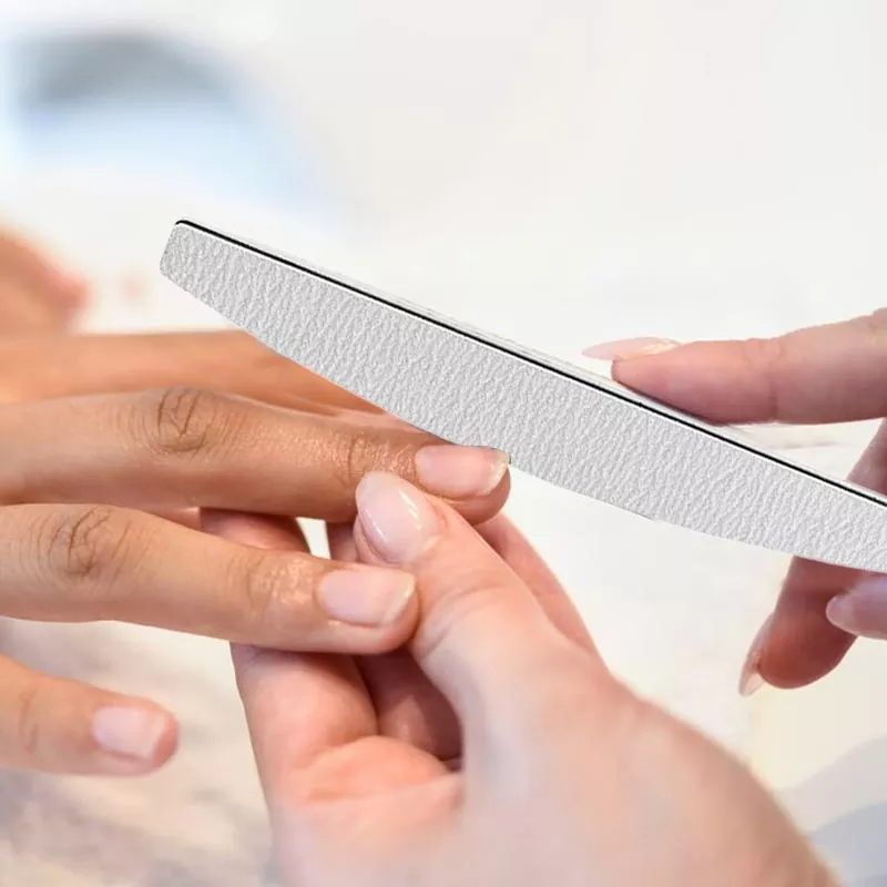 Меката външна гъба е фино -зърнести абразивни частици, осигурявайки гладко изживяване. Той е идеален за всички типове нокти, независимо дали имате крехки, тънки нокти или силни, дебели. Гъвкавостта на гъбата му позволява да съответства на естествената форма на ноктите ви, осигурявайки равномерно подаване и предотвратяване на неравномерни ръбове.