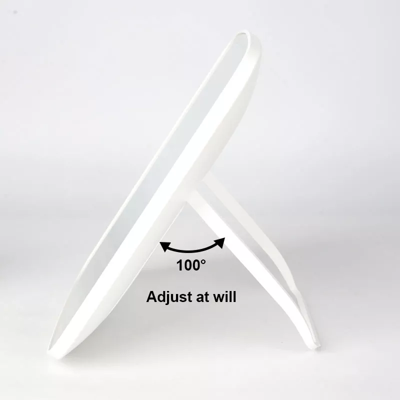 Това настолно LED огледало за грим разполага с 3 регулируеми светлинни режима (студено, естествено, топло), за да съответства на различни сценарии за грим, осигурявайки реалистично осветление за прецизно нанасяне. Неговата 100° регулируема стойка позволява гъвкави ъгли на гледане, докато тънкият, лек дизайн осигурява лесна преносимост.