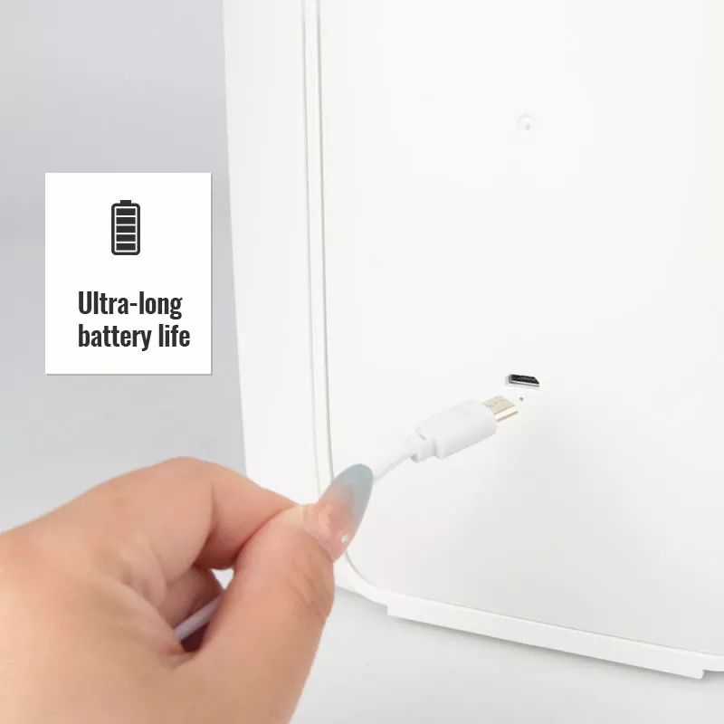 Захранвано от вградена акумулаторна батерия, това огледало поддържа USB-C бързо зареждане и предлага изключително дълъг живот на батерията за продължителна употреба. Няма нужда от често презареждане, което го прави надежден както за ежедневна домашна употреба, така и за дълги пътувания. Енергийно ефективният LED дизайн също намалява консумацията на енергия.